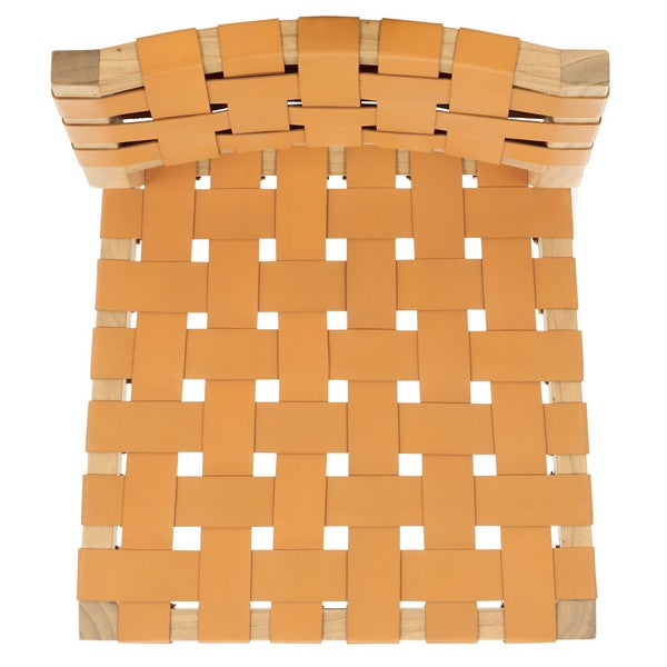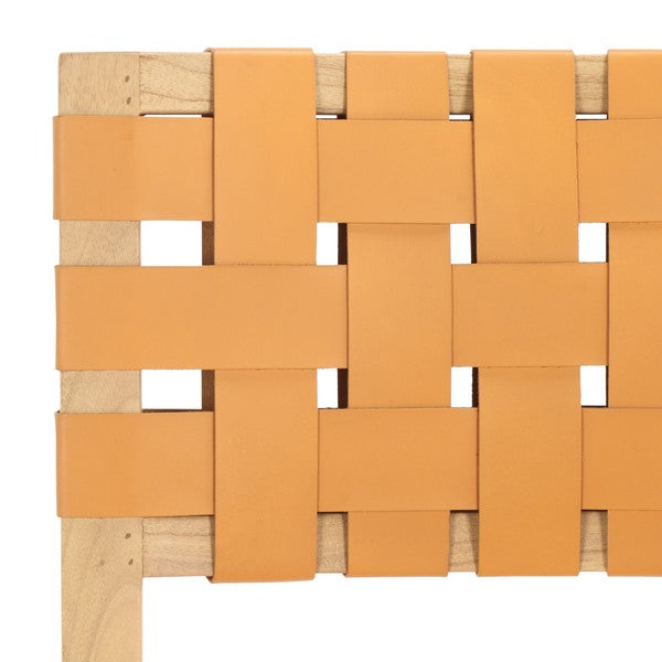 Experience refined style with the Bette Woven Leather Dining Chair. Crafted from durable mindi wood with its natural grain on full display, the chair pairs a warm tan leather seat with a sleek, modern silhouette. The genuine leather adds a touch of sophistication, while the harmonious blend of wood and leather brings inviting warmth and contemporary elegance to any dining space.