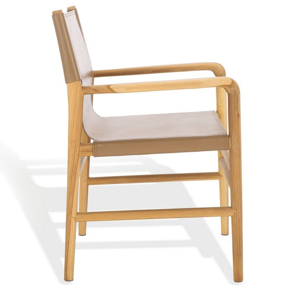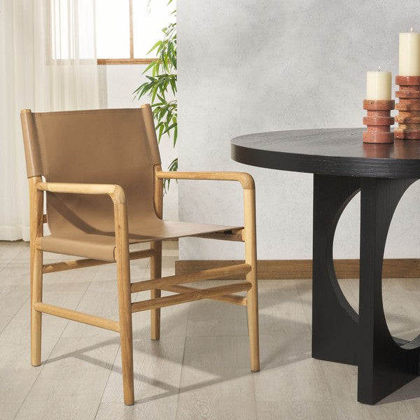 Elevate your home or office with the Cassaphina Leather Arm Chair, a perfect blend of comfort and sophistication. Crafted from resilient teak wood, its sturdy frame ensures lasting support and stability. The chair’s top-grain leather upholstery, in a warm brown-natural palette, offers a soft, inviting touch while developing character over time. With its refined materials and impeccable craftsmanship, the Cassaphina Chair delivers timeless elegance and luxurious comfort, making it a distinguished addition to any interior.