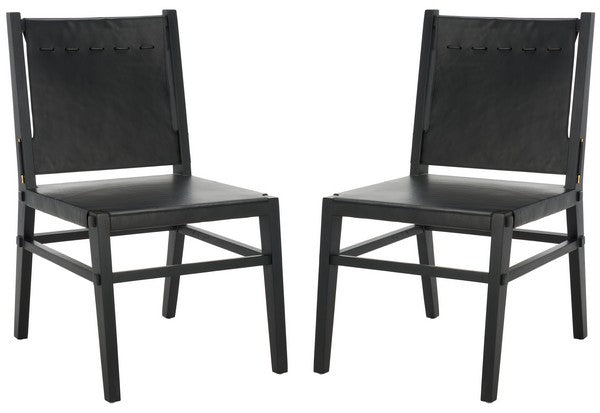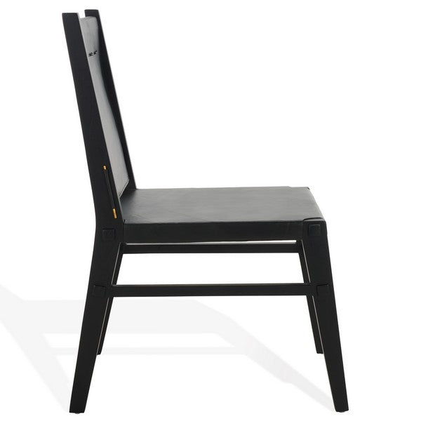 Experience the height of dining sophistication with the Cartriella Leather Dining Chair. Crafted from robust mindi wood and accented with elegant brass details, this chair combines lasting durability with refined style. The rich black leather seat exudes luxury while offering plush comfort, creating a striking addition to any dining table. Sleek lines, premium materials, and thoughtful design come together to deliver a dining chair that embodies both elegance and enduring quality.