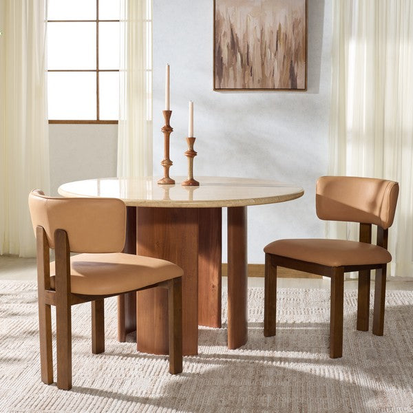 Elevate your dining space with the refined elegance of our Katiya Leather Dining Chair. Expertly crafted from durable rubberwood in a warm walnut finish, this chair pairs timeless craftsmanship with modern sophistication. The seat is upholstered in premium Italian leather, offering a luxurious touch that complements both contemporary and classic interiors.