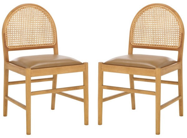 Laylie Rattan And Leather Dining Chair - Brown (Set of 2)