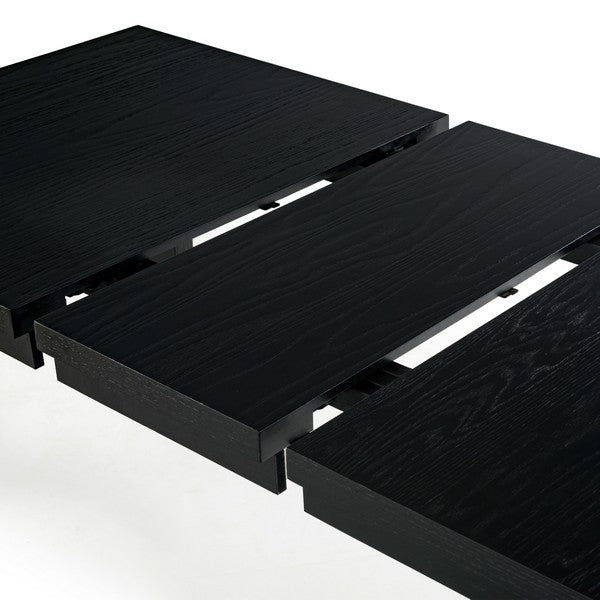 Elevate your dining space with the Desmond Extendable Wood Dining Table—a perfect fusion of practicality and modern sophistication. Crafted from solid wood, oak veneer, and manufactured wood, it offers lasting strength and timeless appeal. The sleek black finish enhances its refined silhouette, while the natural wood grain adds depth and character. Designed to adapt, the extendable feature lets you easily expand the table to accommodate more guests, making it ideal for both everyday meals and special occasions. Stylish, sturdy, and versatile—the Desmond table is built to impress.