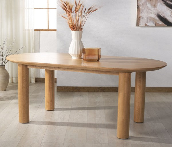 Introducing the Sofiette Wood Oval Dining Table—a seamless blend of style, strength, and everyday functionality. Crafted from Natural Oak, veneer, and MDF, it offers both visual warmth and long-lasting durability. The smooth tabletop and elegantly tapered oak legs create a refined yet grounded look, making it a standout focal point in any dining space. With its soft natural finish and subtle veneer detailing, the Sofiette brings a calm, sophisticated energy to your home. Built to impress and made to last, it’s the perfect anchor for both everyday meals and special occasions.
